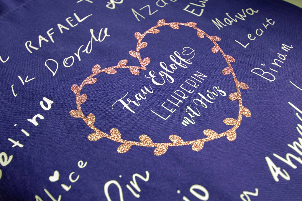 Das Schuljahr geht zu Ende und das bedeutet oft auch Abschied nehmen. Wie zeigt man einer Lehrperson auf eine besondere Weise, wie sehr man ihre Arbeit und Hingabe schätzt? Ich habe eine wunderschöne Idee ausprobiert: Eine personalisierte Tragetasche mit den Namen aller Kinder aus der Klasse und natürlich dem Namen der Lehrerin!