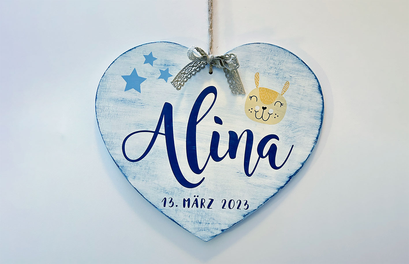 Als Dekoration für das Kinderzimmer. Personalisierbar mit Name und Geburtsdatum.